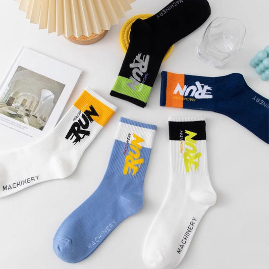 Buy 5 Get 5 Free Letter Blocking Mid-Calf Socks