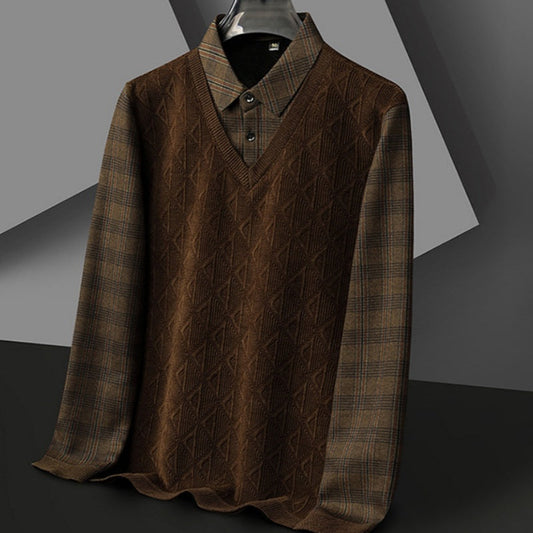 ✨New Arrival✨Men's Fake Two Piece Lapel Knitted Sweater