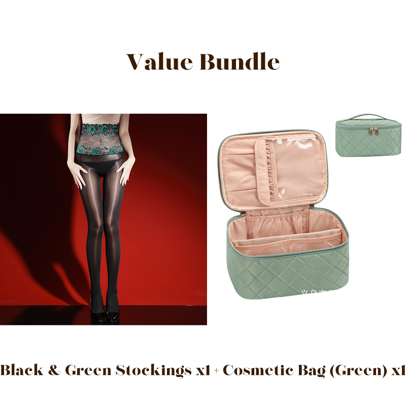 🌹 Value Bundle: 8D Oil-Sheen Rose Lace Stockings + Cosmetic Bag – Sheer Glow, Delicate Lace & Perfect Gift Set 🎀