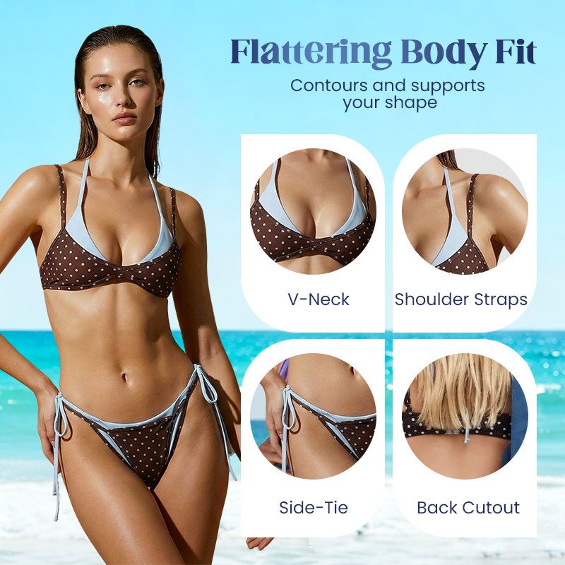 Package Includes: 1 * Women's Polka Dot Side-Tie Bikini Set