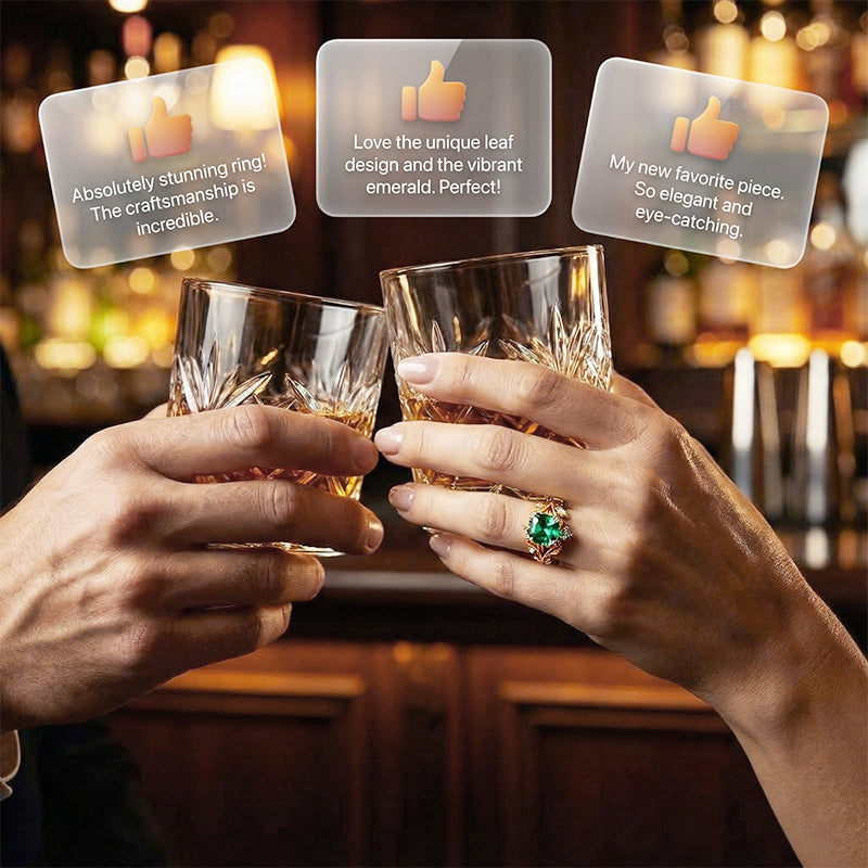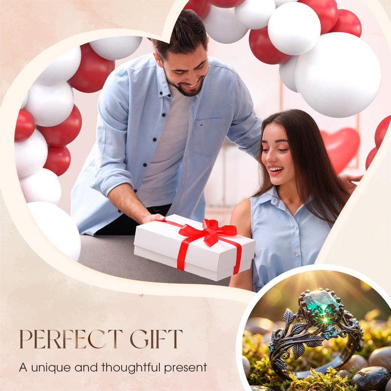 💖Green Synthetic Crystal Ring with Intricate Leaf