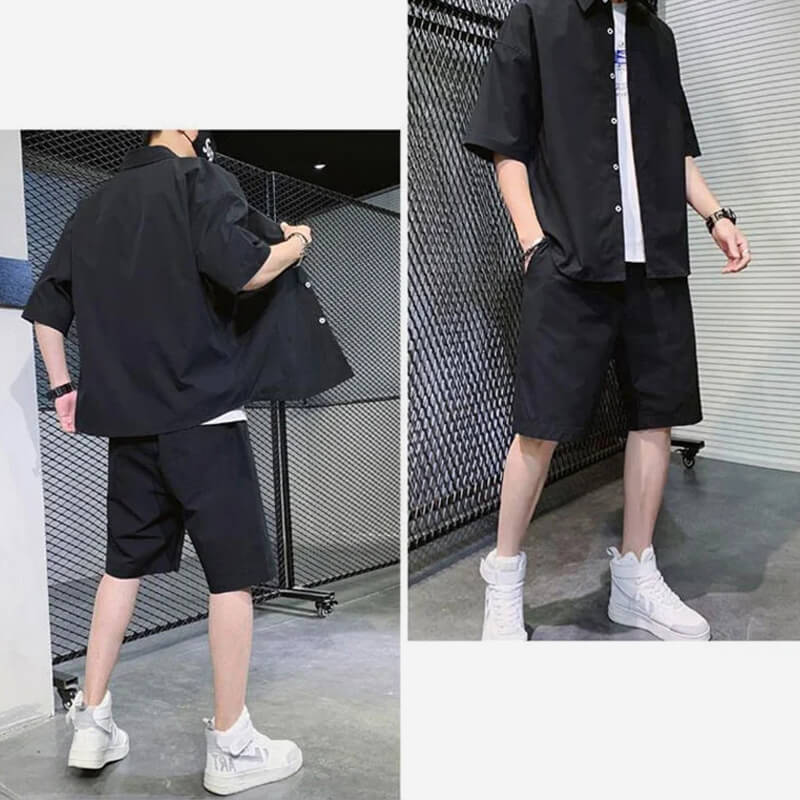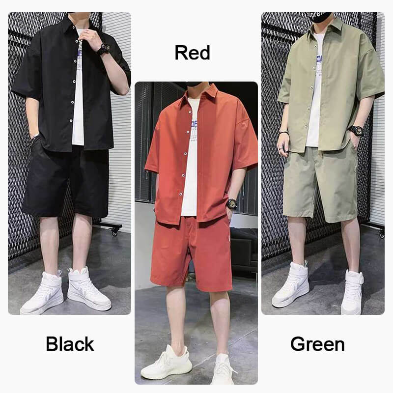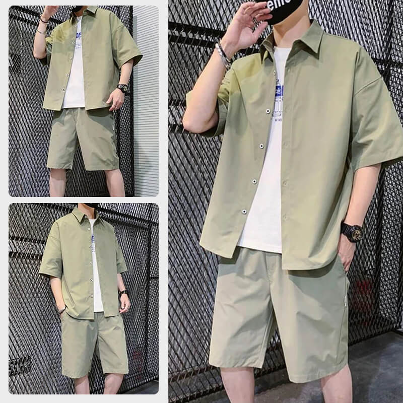 Men's ice silk shirt and shorts 2 piece set outfits are made of ice silk fabric. Lightweight, quick dry, slightly elastic, breathable and comfortable, keeping you cool and fresh throughout the summer.