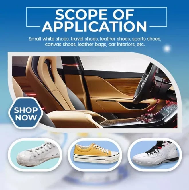 Don't Need To Water Wash: Decontamination and brightening, a double protective factor, after cleaning, an isolation film is formed on the upper, which can isolate dust and stains. Use without water wash to remove stubborn stains from shoes easily and quickly.