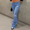 Women's Ripped Flare Jeans with Frayed Hem
