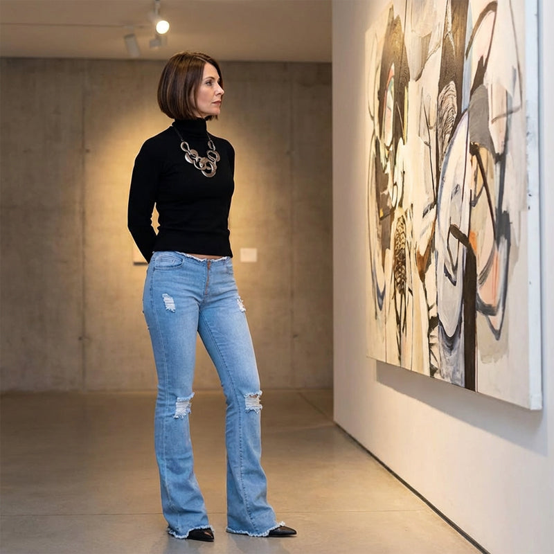 VERSATILE DENIM FABRIC - Crafted from classic denim, these jeans offer both durability and comfort for all-day wear. Their versatile nature allows them to be dressed up or down for any occasion, from casual outings to artistic events.